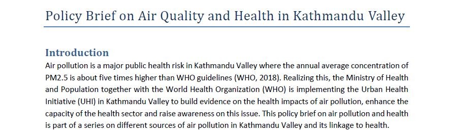 Air Pollution & Health in Kathmandu Valley (Transport)